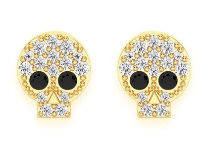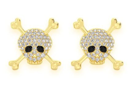 Skull Hoop Dangling Diamond Earrings 14k Solid Gold 0.30ctw
