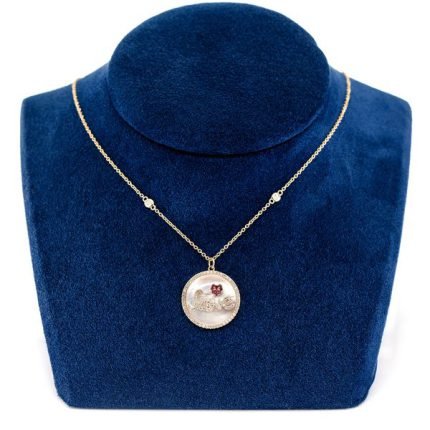 Mother Of Pearl Love Disc Halo Diamond Pendant Attached Necklace 14k Solid Gold 3.00ctw