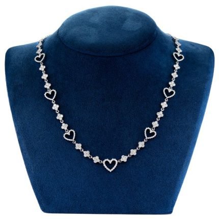 Open Heart Clover Diamond Link Necklace 14k Solid Gold 5.00ctw