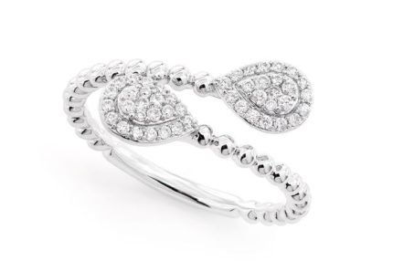 Beaded Pear Wrap Diamond Ring 14k Solid Gold 0.20ctw