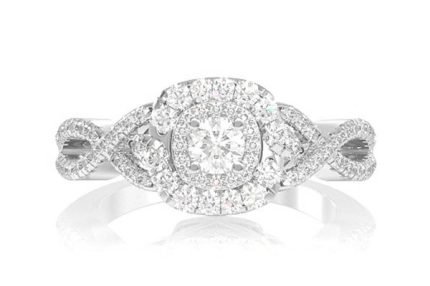 0.65ctw Double Halo Cluster Flower Diamond Engagement Ring 14k Solid Gold – All Natural