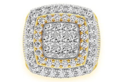 Cushion Shape Signet Diamond Ring 14k Solid Gold 3.35ctw