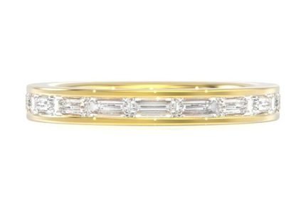 One Row Graduated Border Baguette & Round Diamond Band Ring 14k Solid Gold 1.00ctw