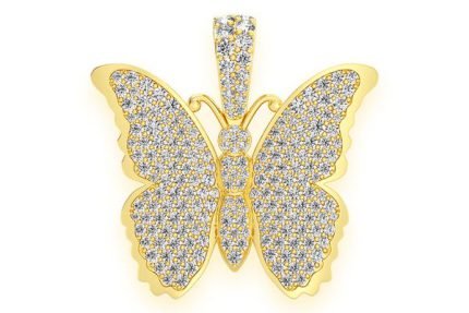 Butterfly Diamond Pendant 14k Solid Gold 2.00ctw