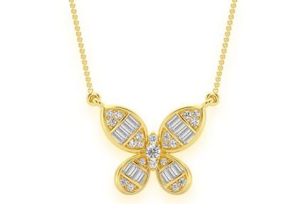Butterfly Diamond Pendant 14k Solid Gold 1.00ctw
