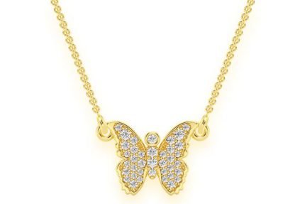 Butterfly Diamond Pendant 14k Solid Gold 0.40ctw