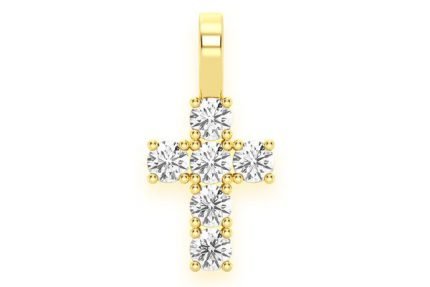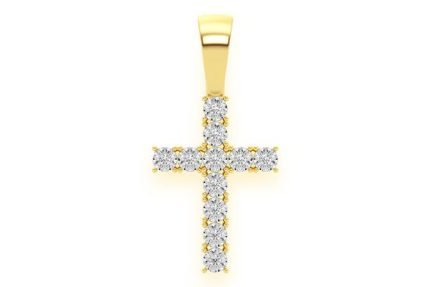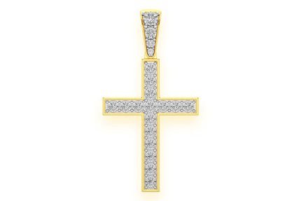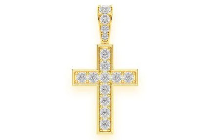 Half Bezel Cross Diamond Pendant 14k Solid Gold 0.75ctw