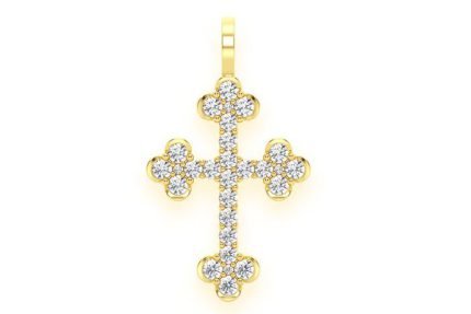 Rounded Open Round And Baguette Diamond Cross Pendant 14k Solid Gold 0.50ctw