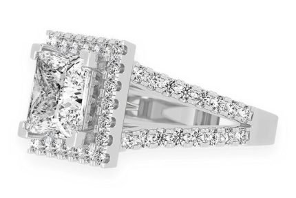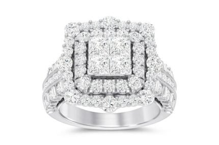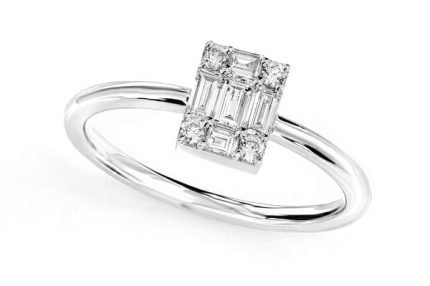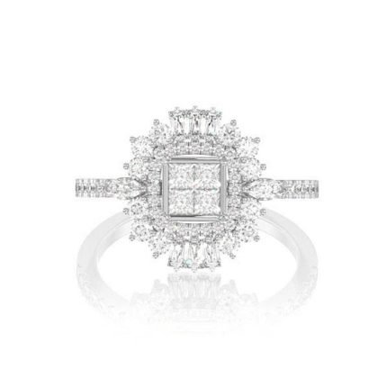 Baguette Cluster & Round Diamond Halo Engagement Ring – All Natural – 0.50ctw