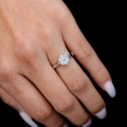 Cathedral Round Cluster Diamond Engagement Ring 14 Solid Gold – All Natural – 0.50ctw