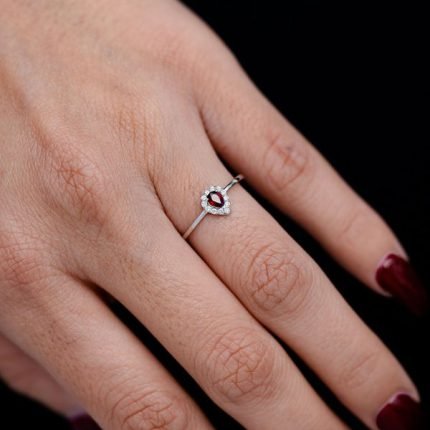 Pear Shape Ruby And Diamond Halo Engagement Ring – All Natural – 14k Solid Gold – 0.08ctw