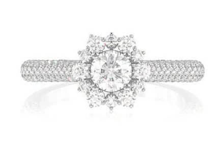 Flower Burst Pave Band Diamond Engagement Ring 14k Solid Gold – All Natural – 1.00ctw