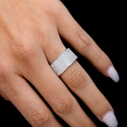Nine Row Wide Diamond Band Ring 14k Solid Gold 1.60ctw