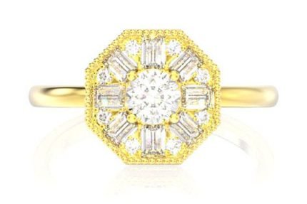 Octagon Baguette Halo Diamond Ring 14k Solid Gold 0.35ctw