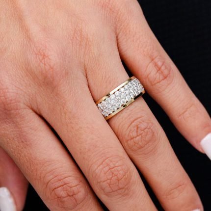 Three Row Diamond Band Ring 14k Solid Gold 1.25ctw