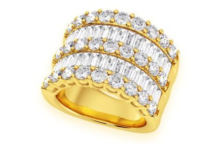 Super Three Row Round & Baguette Diamond Ring 14k Solid Gold 5.25ctw
