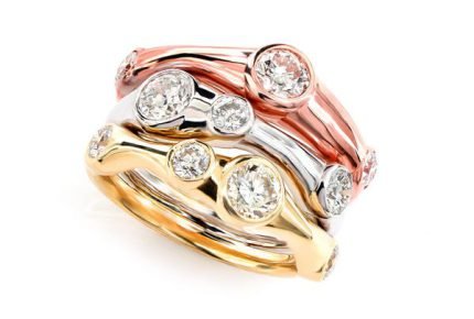 Tri-Color Scattered Gypsy Set Diamond Ring 14k Solid Gold 2.10ctw