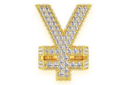 Yen Symbol Signet Diamond Ring 14k Solid Gold 8.50ctw