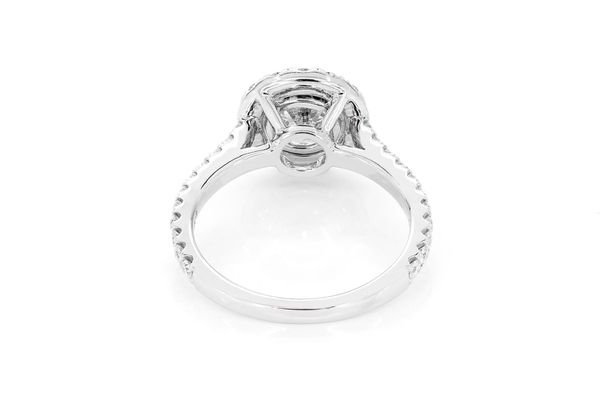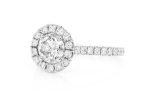 - The 1-carat round brilliant cut diamond takes center stage, encircled by a halo of smaller stones that magnify its size and brilliance, creating a breathtaking sparkly effect.