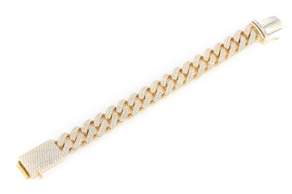 This Icebox 16mm Miami Cuban Link is made of 14K Yellow gold with 12.25ctw of diamonds.