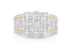 - Crafted in two-tone 14K gold, this multi-row sparkler showcases a square composite of shimmering princess-cut diamonds.