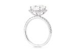 • Additionally, delicate diamonds form a halo around the center and down the shank, adding to its grandeur.