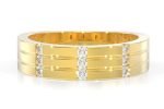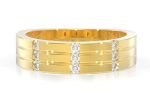 - The band’s polished satin finish exudes a modern and refined aesthetic and enhances the radiant allure of the diamonds.