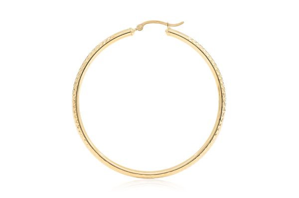 3MM Diamond-Cut Hoop Earrings 14k Solid Gold Large