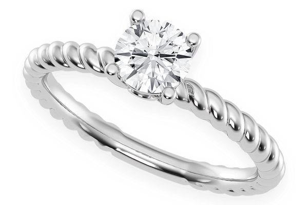 This Icebox Twist Band Solitaire is made of 14K White gold.