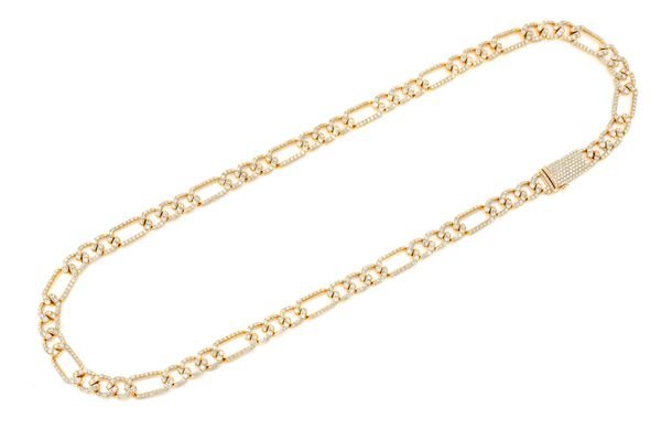 This Icebox 8mm Figaro Link is made of 14K Yellow gold with 17.00ctw of diamonds.
