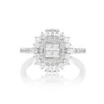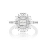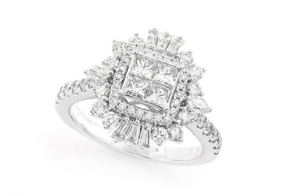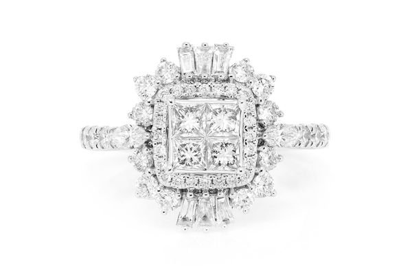 Art Deco Princess Diamond Ring 14k Solid Gold 1.50ctw