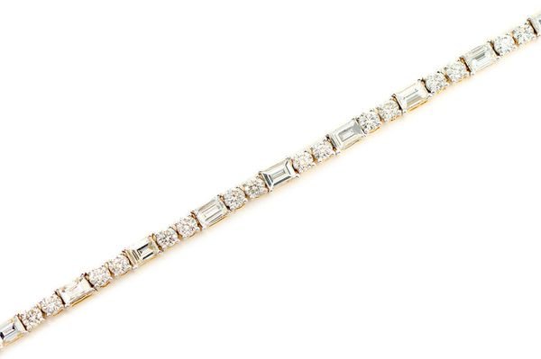 Baguette And Round Diamond Tennis Bracelet 14k Solid Gold 3.50ctw