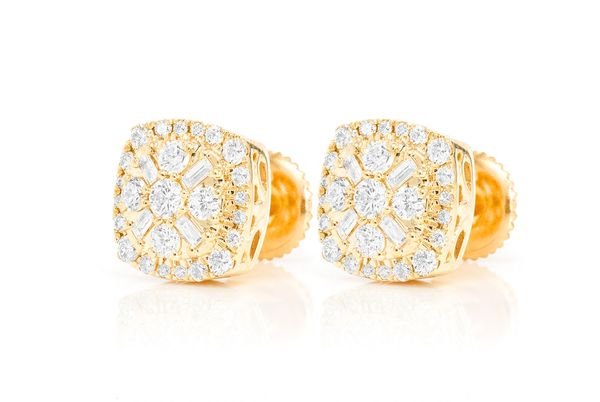 This Icebox Baguette Flower Stud is made of 14K Yellow gold with 1.00ctw of diamonds.