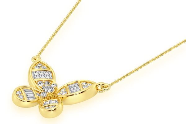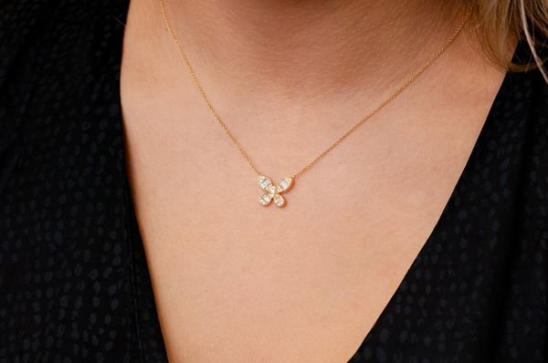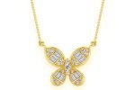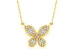 Butterfly Baguette Diamond Necklace Connected 14k Solid Gold 0.33ctw