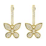 Butterfly Dangling Diamond Hoop Earrings 14k Solid Gold 0.45ctw