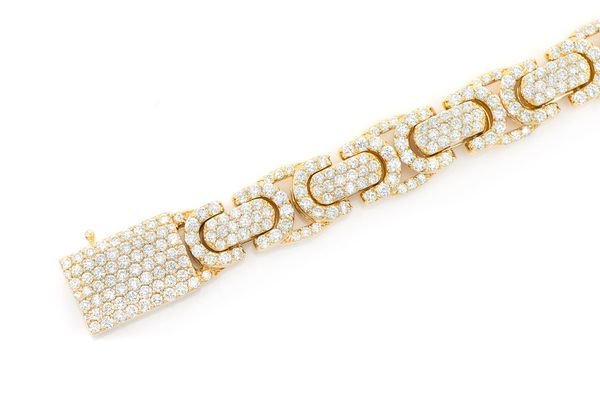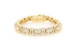 This Icebox Flat Byzantine Link is made of 14K Yellow gold with 10.00ctw of diamonds.