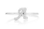 Cursive Letter A Diamond Ring 14k Solid Gold 0.10ctw