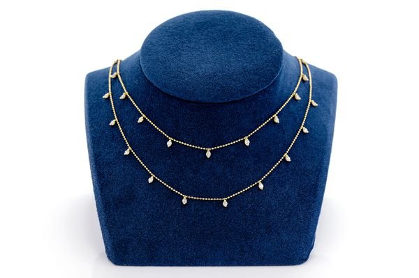 Double Layer Diamond Droplet Necklace 14k Solid Gold 0.90ctw