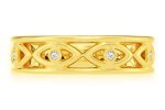 - Open-cut evil eyes make up this Icebox gold band featuring a diamond eye inside each.