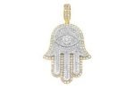 This Icebox Evil Eye Double Layer Hamsa is made of 14K Two-Tone gold.