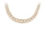 - Each oval link is adorned with dazzling baguettes and round diamonds, which are seamlessly set to taper gradually in size towards the clasp.