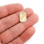 This Icebox Confetti Dog Tag is made of 14K Yellow gold.