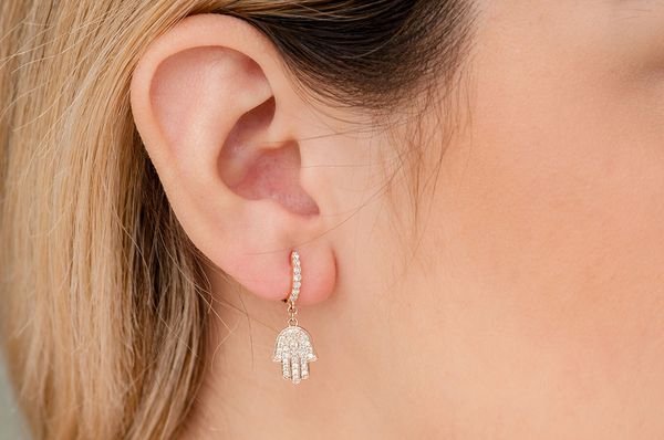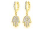 Hamsa Dangling Diamond Earrings 14k Solid Gold 0.50ctw