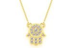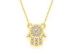 Hamsa Diamond Pendant Necklace Attached 14k Solid Gold .15ctw