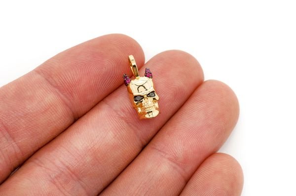 - This horned solid gold skull is a pendant you won’t see anywhere else.