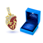 This Icebox Ruby Human Heart is made of 14K Yellow gold.