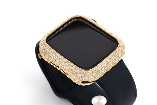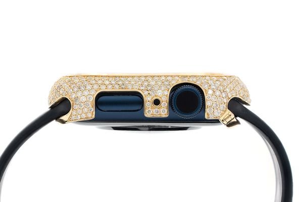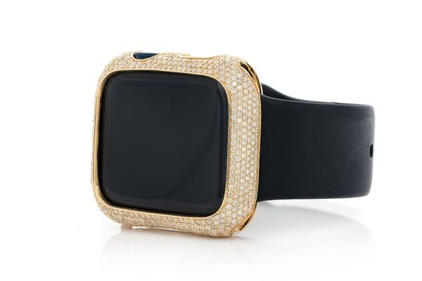 This Icebox Apple Watch Series 5 is made of 14K Yellow gold with 6.10ctw of diamonds. This piece is handcrafted and manufactured by Icebox. All of the diamonds are hand-set by a master diamond setter in the highest quality craftsmanship.