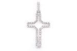 - This open diamond cross meticulously blends round and baguette diamonds.