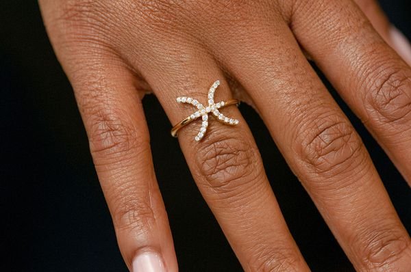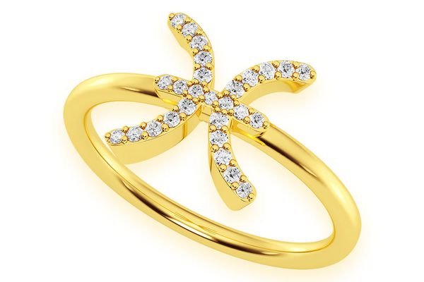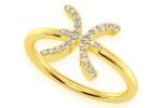 Pisces Zodiac Diamond Ring 14k Solid Gold 0.10ctw