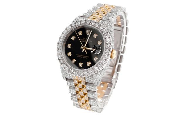 This Rolex watch is a 2006 model with 12.25ctw customized diamonds added in SI.